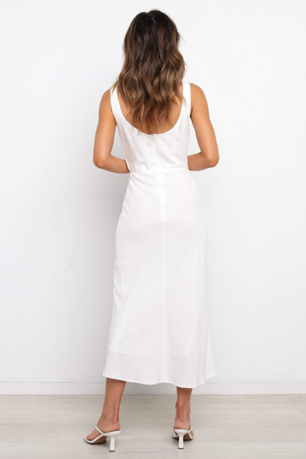 Take your style to new heights in this chic midi length dress! The flattering v neckline creates a timeless silhouette while the bust twist detail with cut out feature adds a touch of glamor. For an extra bit of security. the dress is finished off with a hook and eye clasp and invisible back zip.