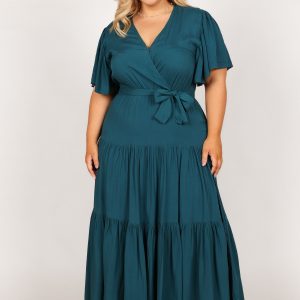 The Barker Dress is the perfect outfit for events and everyday. in a stunning midi length with a v-neckline. ruffle sleeves. and a waist tie detailing. Dress it up with heels or go more casual with sandals. The Barker Dress is the ultimate choice for work. party outfits or Sunday errands.