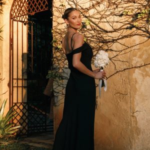 This stunning dress features a maxi length. giving it a sophisticated and timeless appeal. The high halter neckline adds a touch of refinement. while the back neck tie closure and open back with button detail provide a unique and stylish twist.