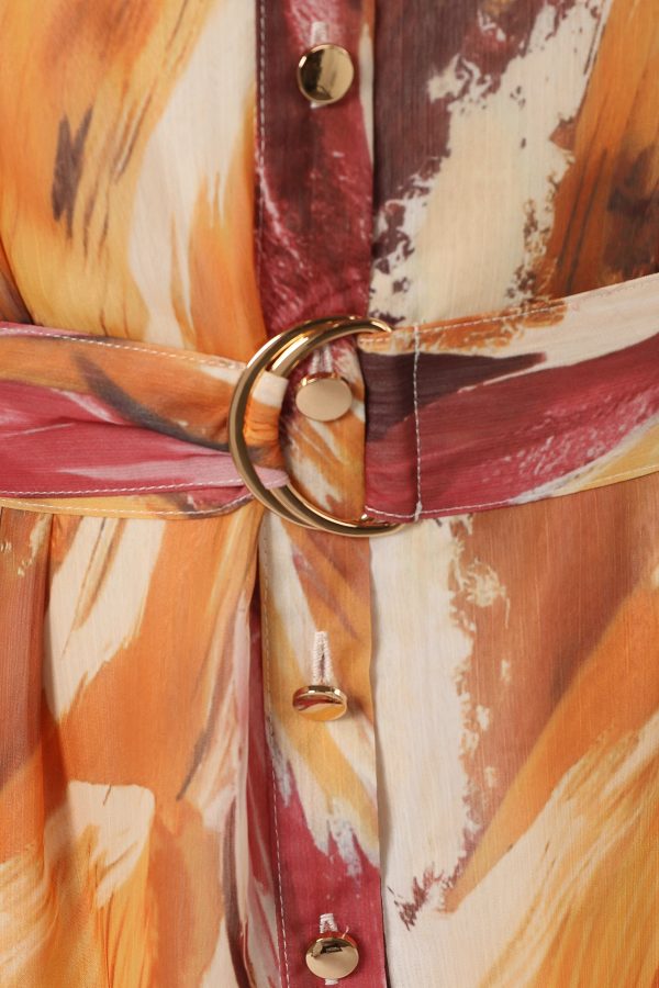 You’ll be turning heads in this stylish mini length dress. A classic high neckline and long sleeves with button cuffs give it a polished look. while functional buttons down the front and detachable belt add an eye-catching element.